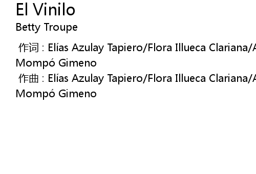 | [00:00.00-1] | 作曲 : Elías Azulay Tapiero/Flora Illueca Clariana/Alejandro Mompó Gimeno |