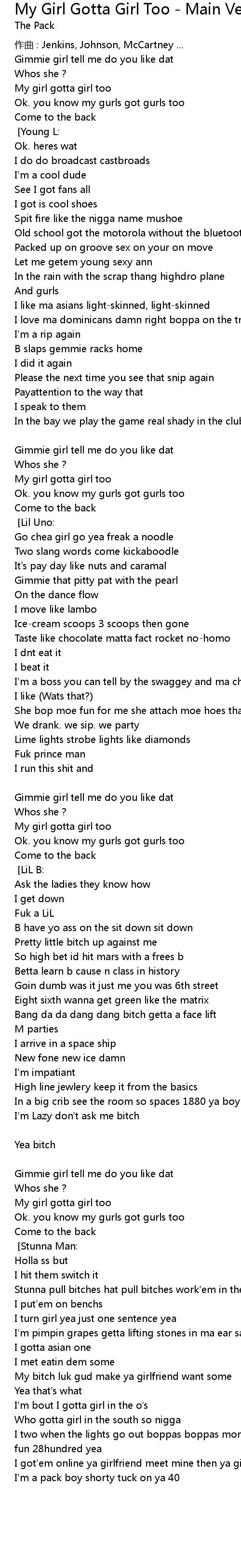 | Song | My Girl Gotta Girl Too - Main Version - Explicit |