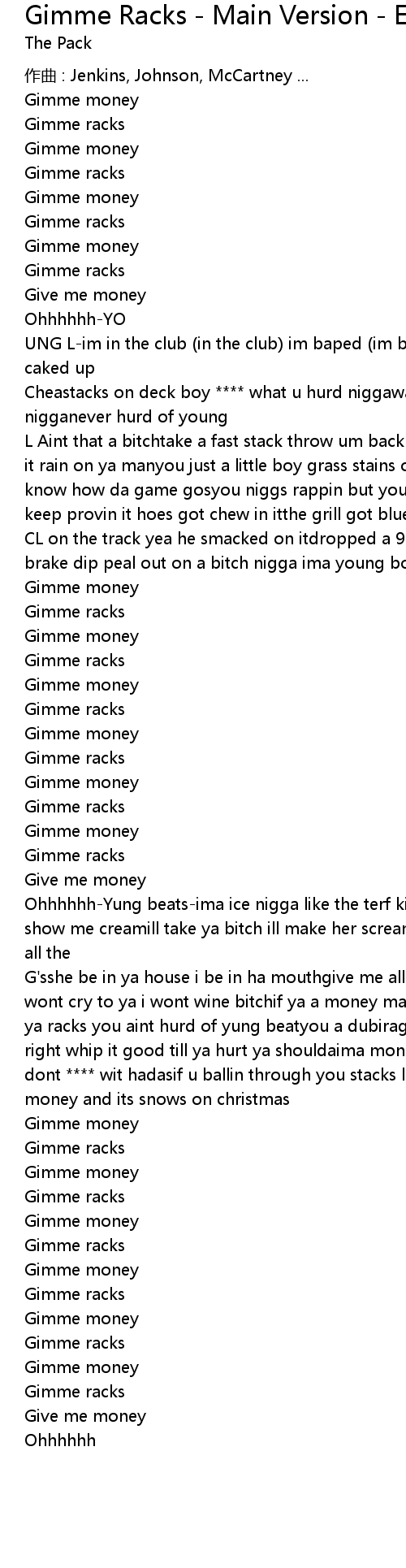 | Song | Gimme Racks - Main Version - Explicit |