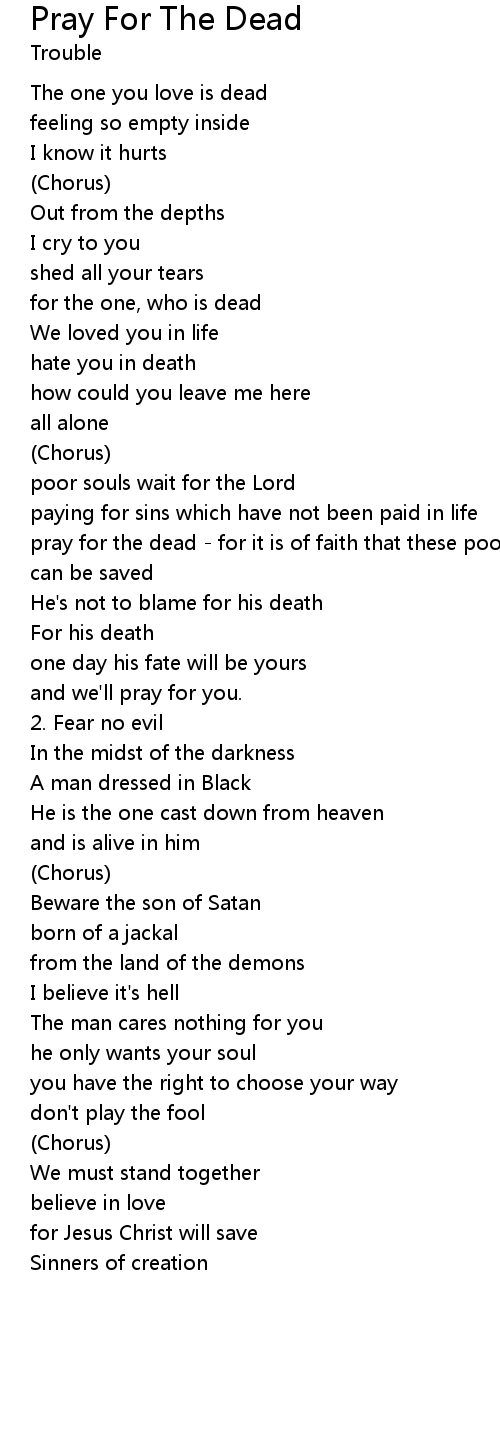 | pray for the dead - for it is of faith that these poor souls | |