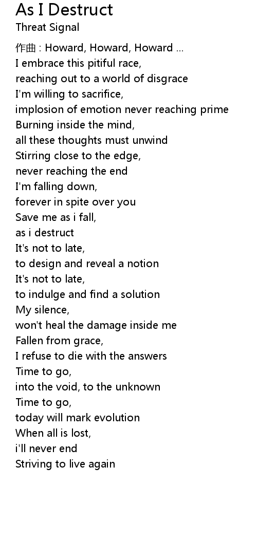 | Song | As I Destruct |