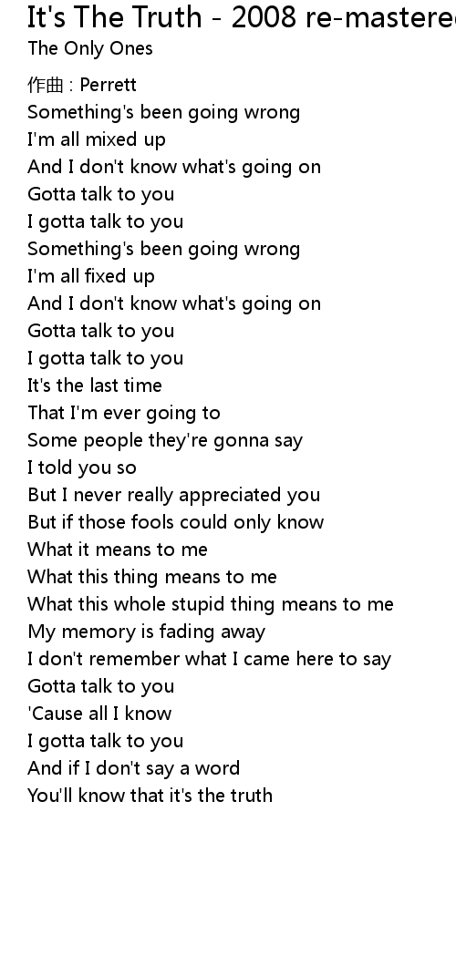 | Song | It's The Truth - 2008 re-mastered version |