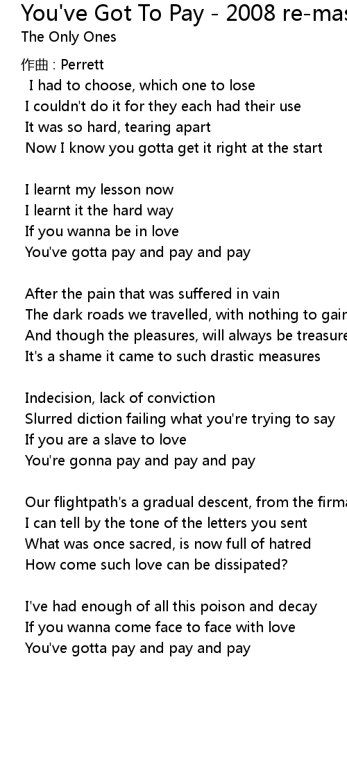 | Song | You've Got To Pay - 2008 re-mastered version |