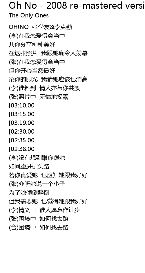 | [00:00.00] | OH!NO 张学友&李克勤 |