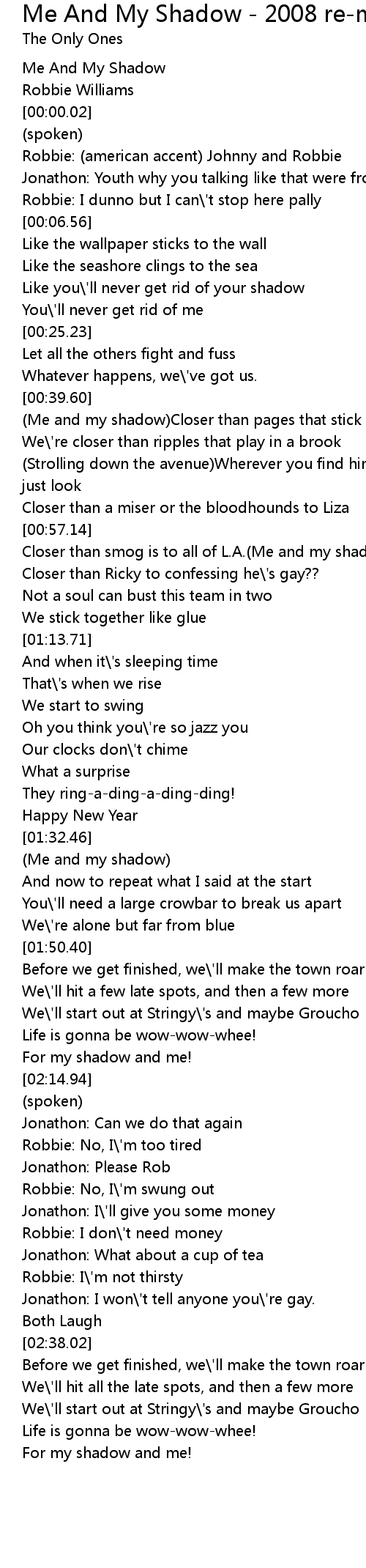 Me And My Shadow - 2008 re-mastered version Lyrics
