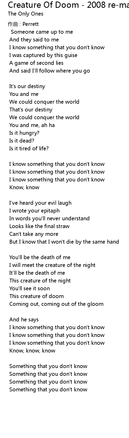 | Song | Creature Of Doom - 2008 re-mastered version |