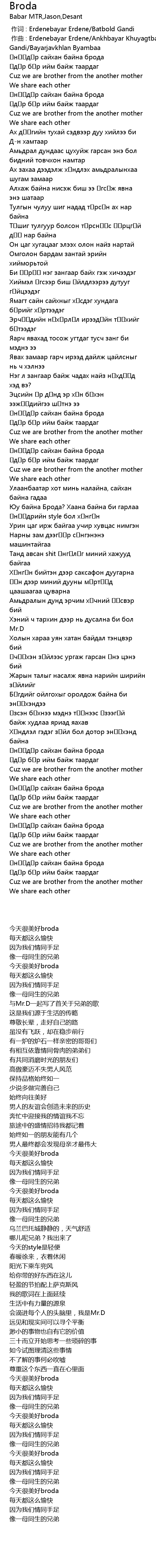 作词 : Erdenebayar Erdene/Batbold Gandi |