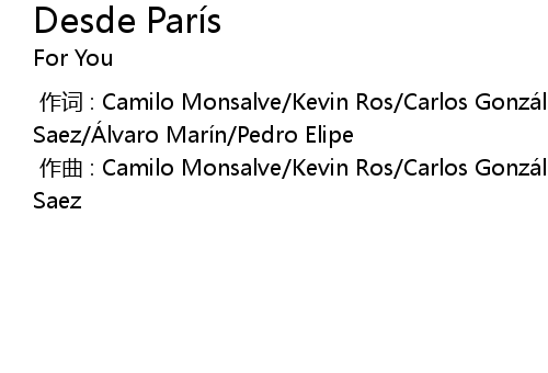 | [00:00.00-1] | zuò cí : Camilo Monsalve Kevin Ros Carlos Gonzá lez Buigues Pau SaezÁ lvaro Marí n Pedro Elipe |
