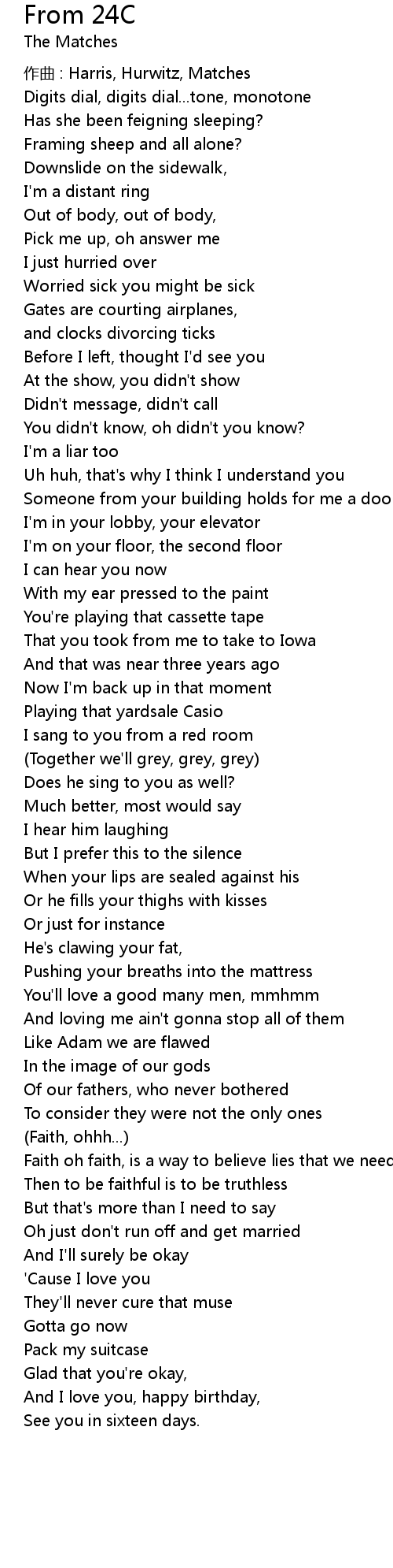 | 作曲 : Harris, Hurwitz, Matches | |