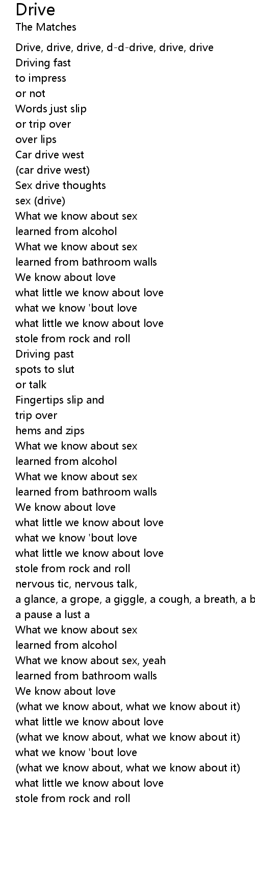 Drive, drive, drive, d-d-drive, drive, drive |