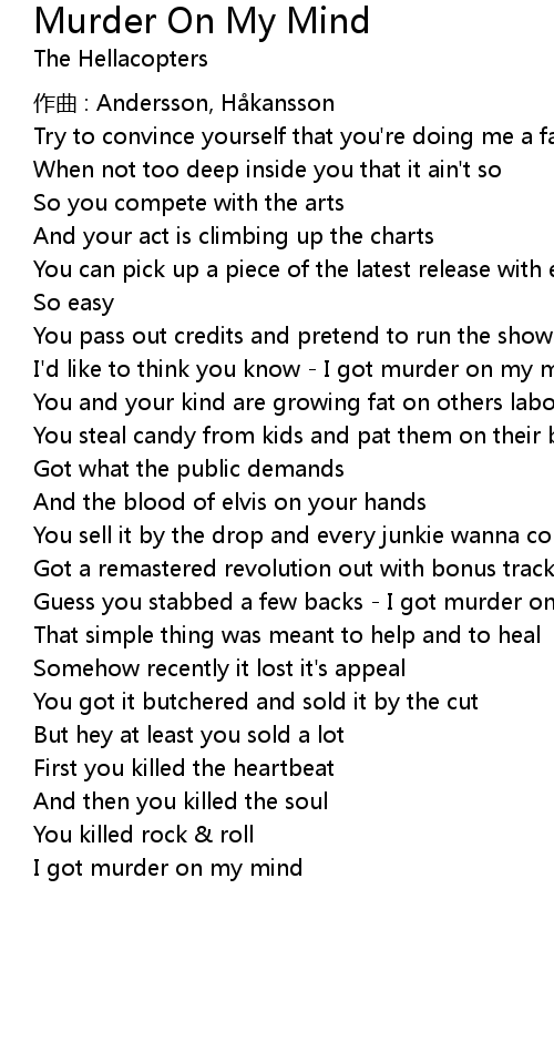 | Guess you stabbed a few backs - I got murder on my mind | |