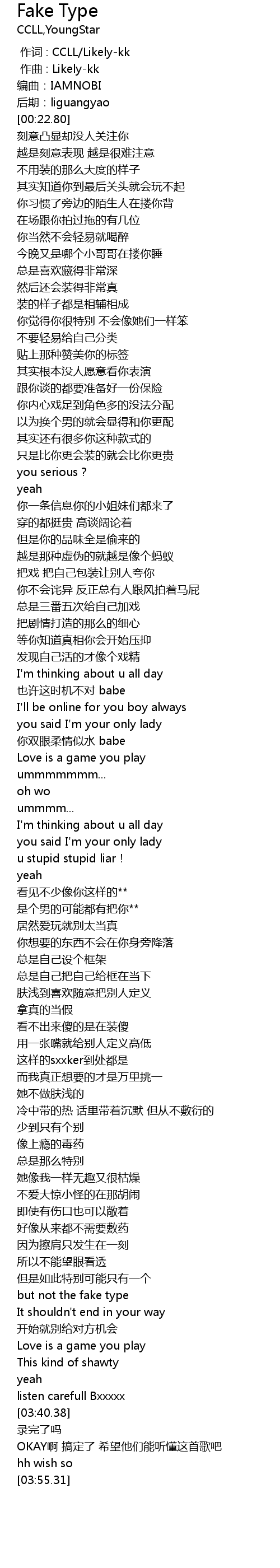 | [00:00.00] | zuò cí : CCLL Likelykk |