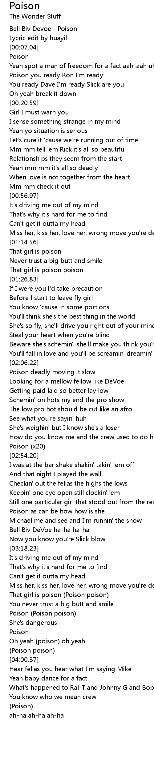[03:54.20] Oh yeah (poison) oh yeah
