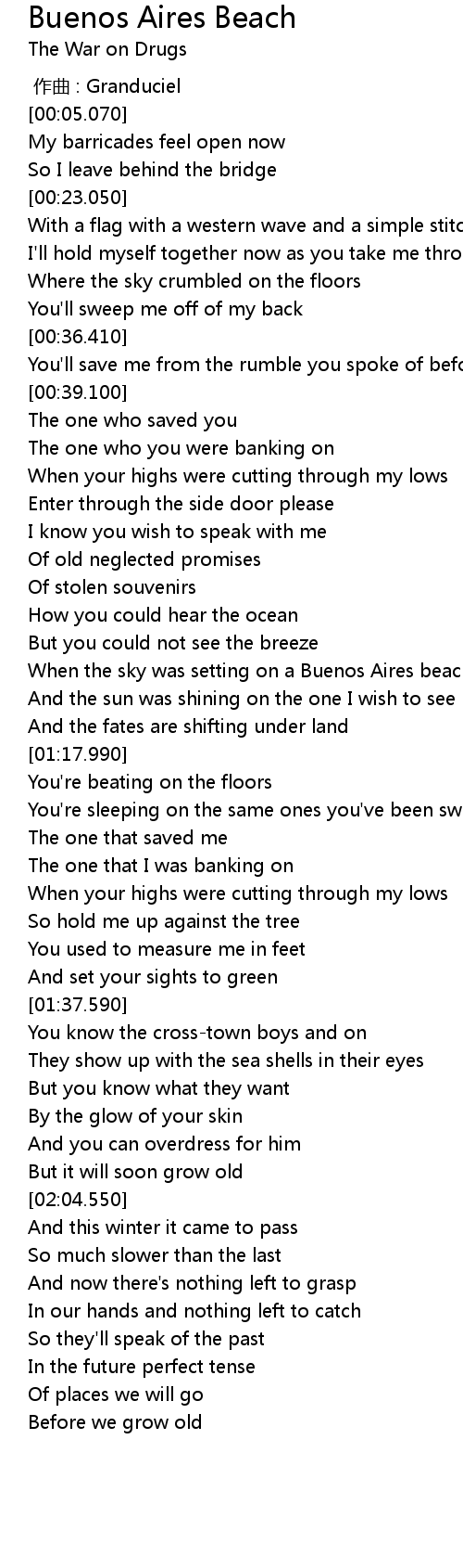 | [01:07.570] | When the sky was setting on a Buenos Aires beach |