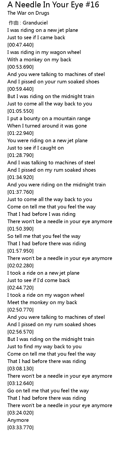 | [03:20.380] | There won't be a needle in your eye anymore |