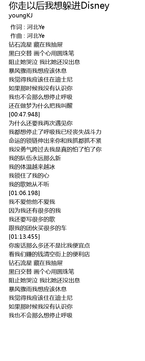 | [00:00.000] | 作词 : 河北Ye |