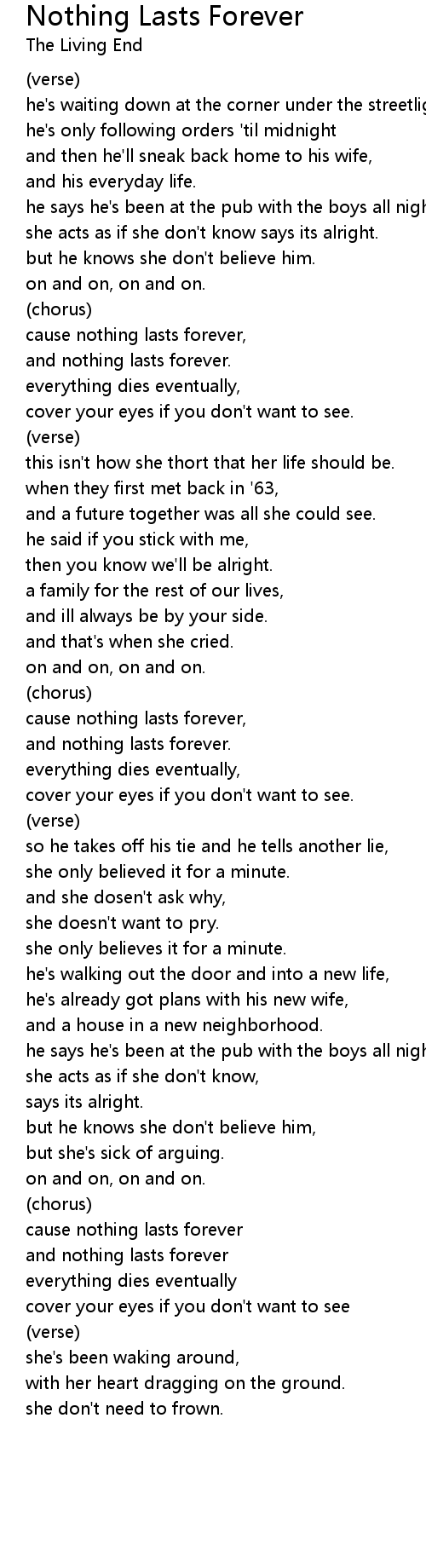 cause nothing lasts forever |