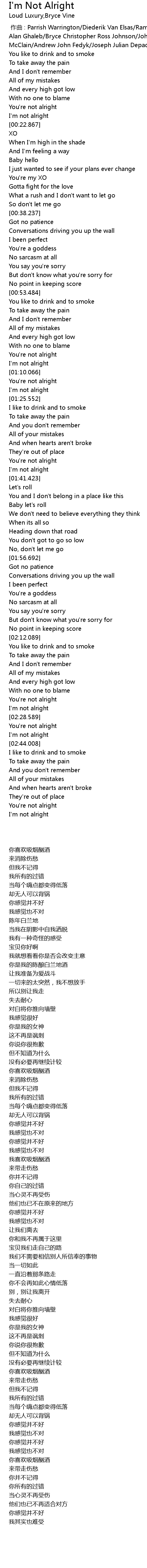 | [00:00.000] | 作曲 : Parrish Warrington/Diederik Van Elsas/Rami Yacoub/James Alan Ghaleb/Bryce Christopher Ross Johnson/John Clark/Marlon Lamont McClain/Andrew John Fedyk/Joseph Julian Depace |