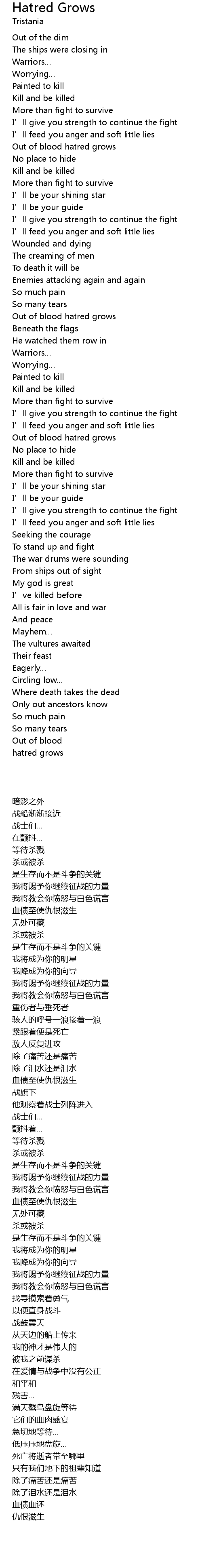 | Song | Hatred Grows |