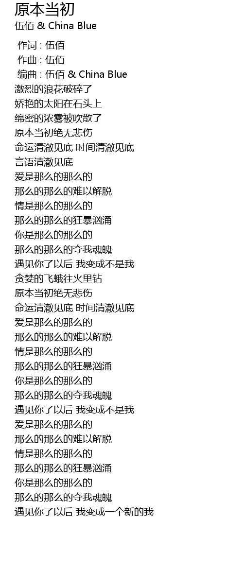 | [00:02.00] | 编曲 : 伍佰 & China Blue |