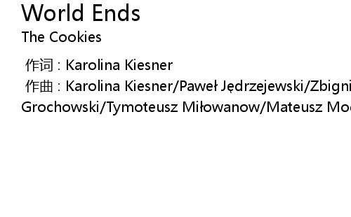 | [00:00.00-1] | 作曲 : Karolina Kiesner/Paweł Jędrzejewski/Zbigniew Grochowski/Tymoteusz Miłowanow/Mateusz Modrzejewski/Aleksander Molak |