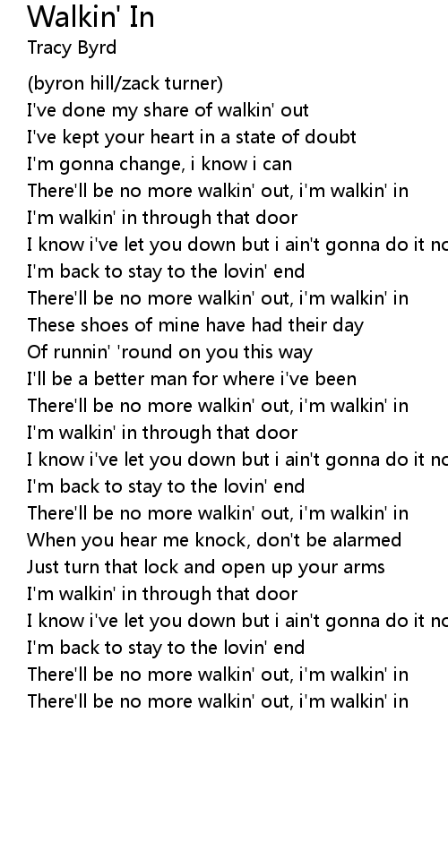 There'll be no more walkin' out, i'm walkin' in |