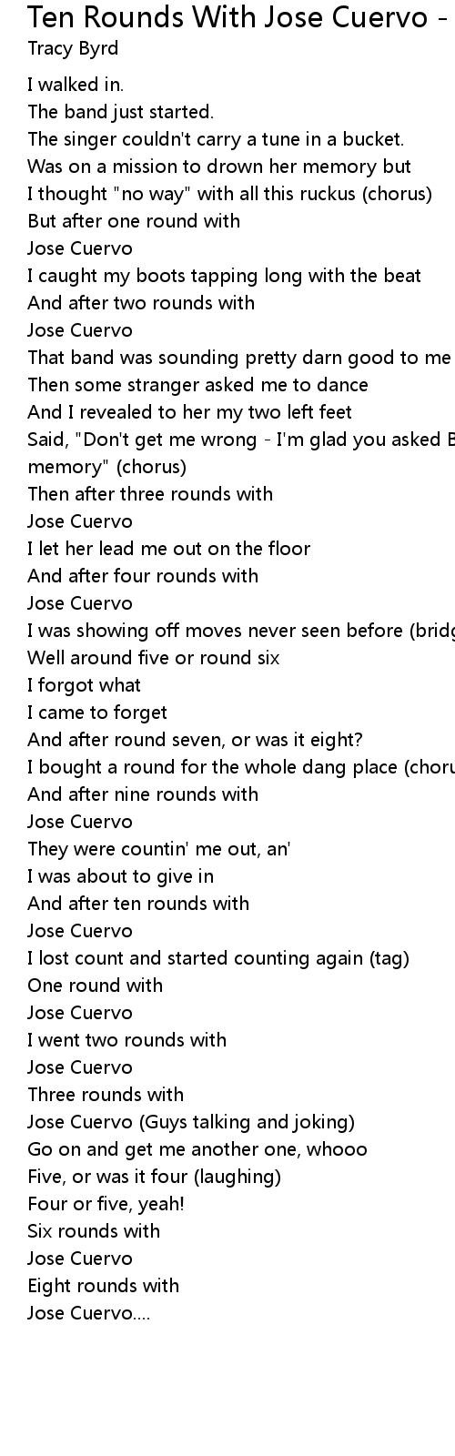 Ten Rounds With Jose Cuervo - Live Version Lyrics