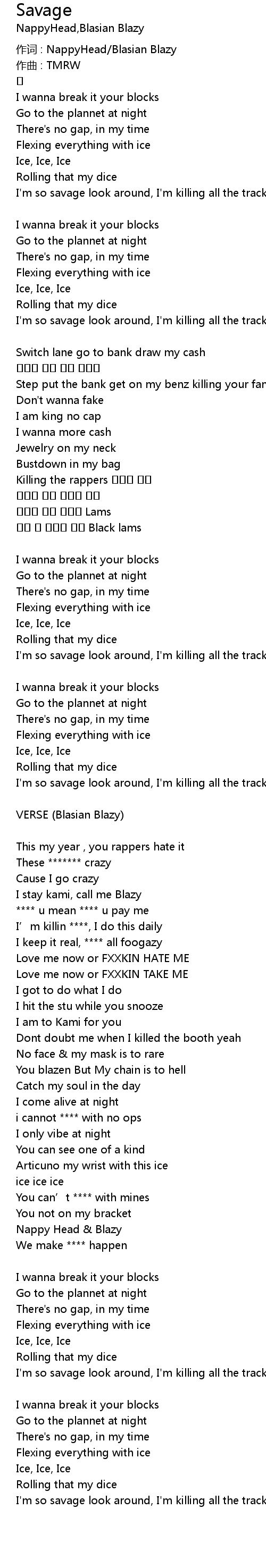 | 作词 : NappyHead/Blasian Blazy | |