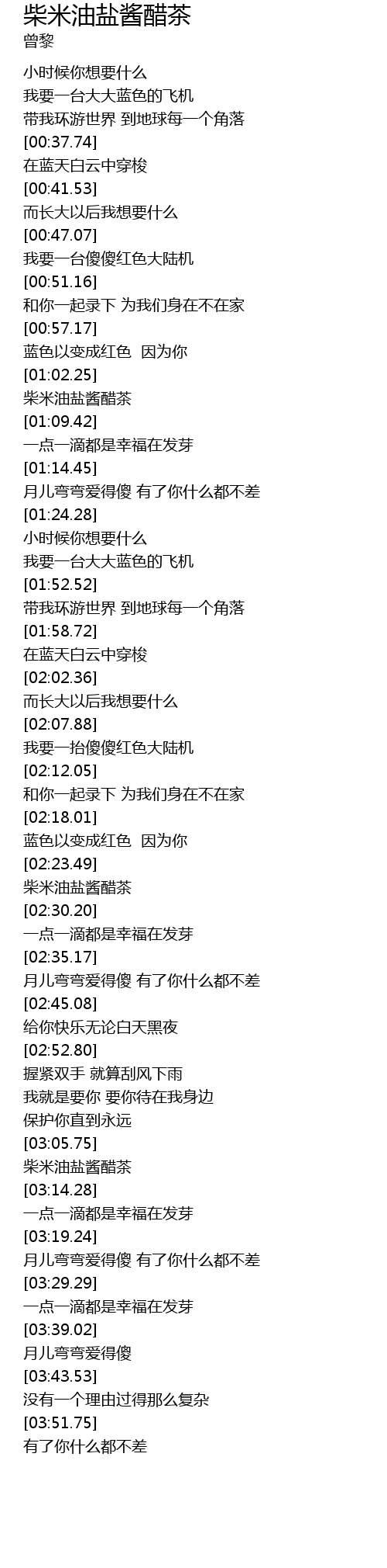 | [03:10.88] | 柴米油盐酱醋茶 |