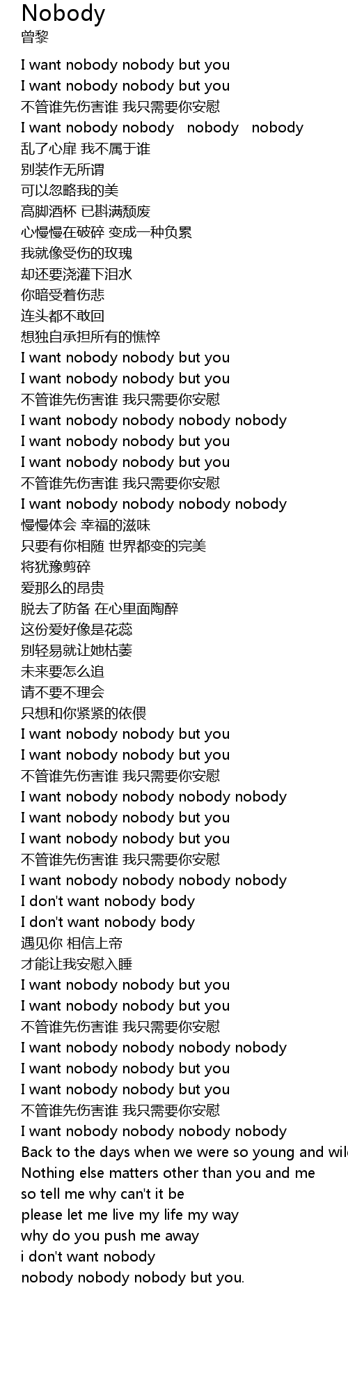 | [01:09.870] | I want nobody nobody nobody nobody |