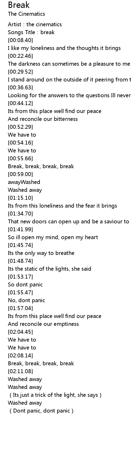 | [00:38.13] | Looking for the answers to the questions Ill never ask |
