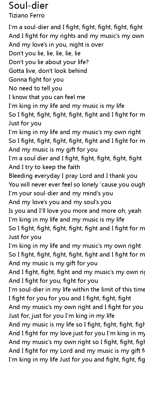 I'm a soul-dier and I fight, fight, fight, fight, fight |
