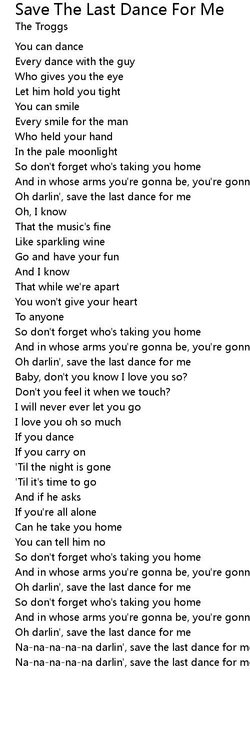 Na-na-na-na-na darlin', save the last dance for me |