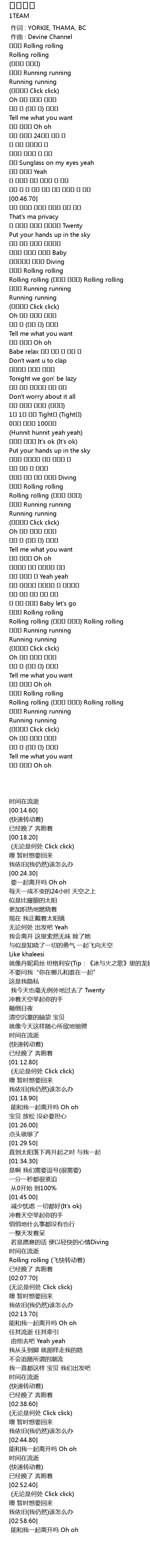 | [01:09.40] | Rolling rolling (빠르게 돌아가) Rolling rolling |