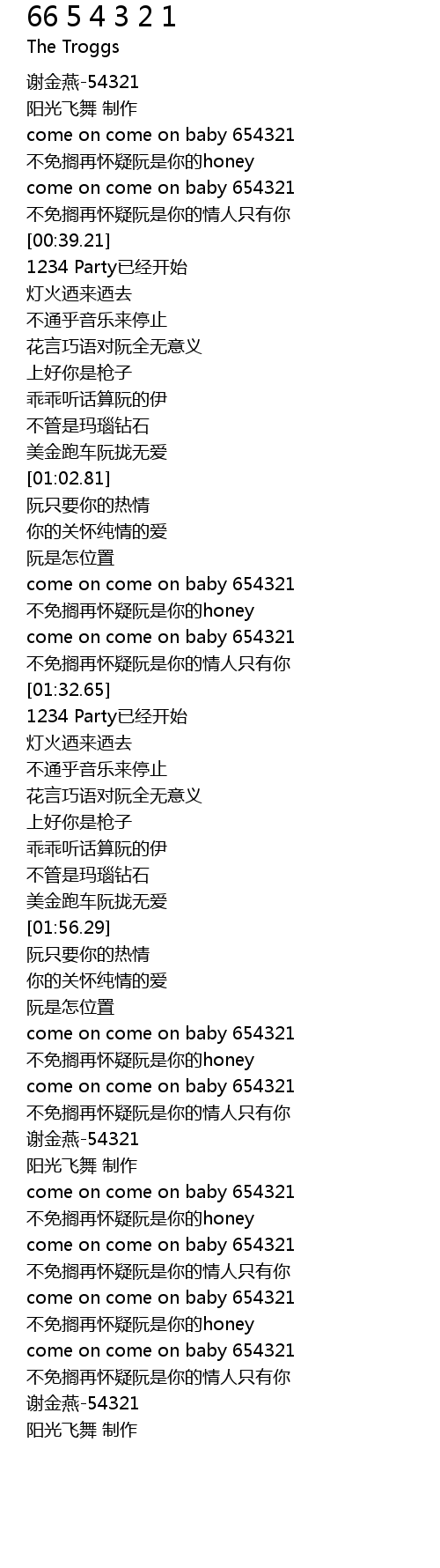 | [03:12.76] | come on come on baby 654321 |
