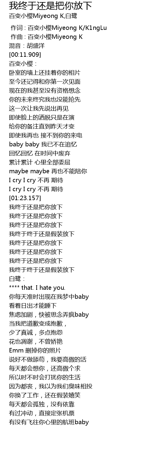 | [01:30.158] | wo zhong yu hai shi ba ni fang xia |