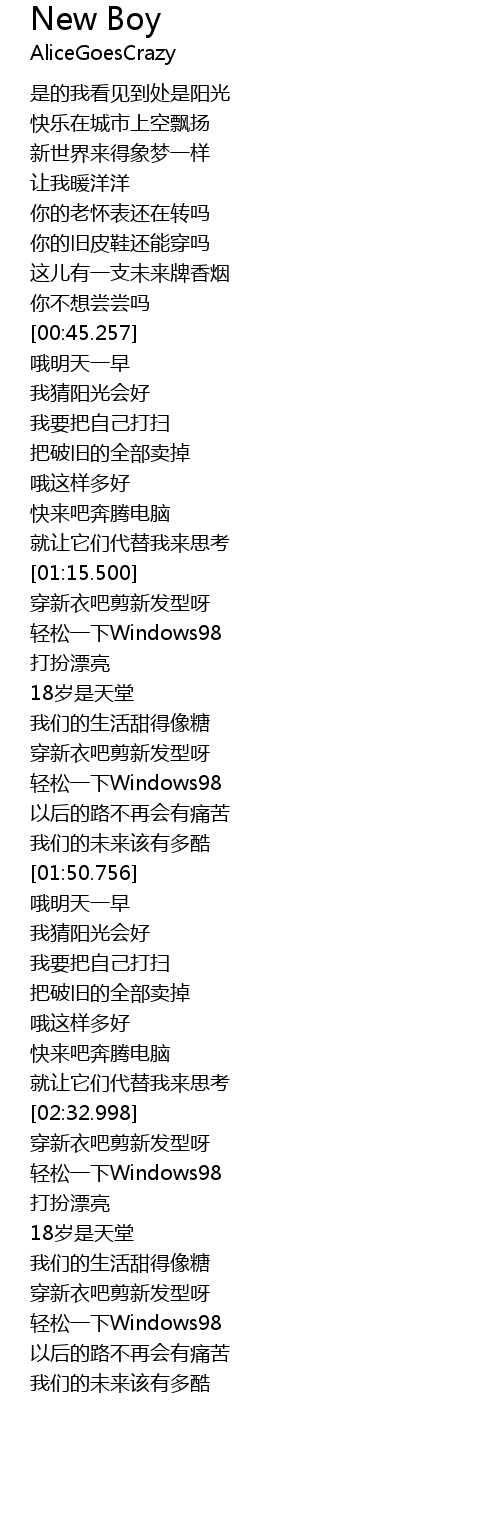 | [02:49.673] | 穿新衣吧剪新发型呀 |