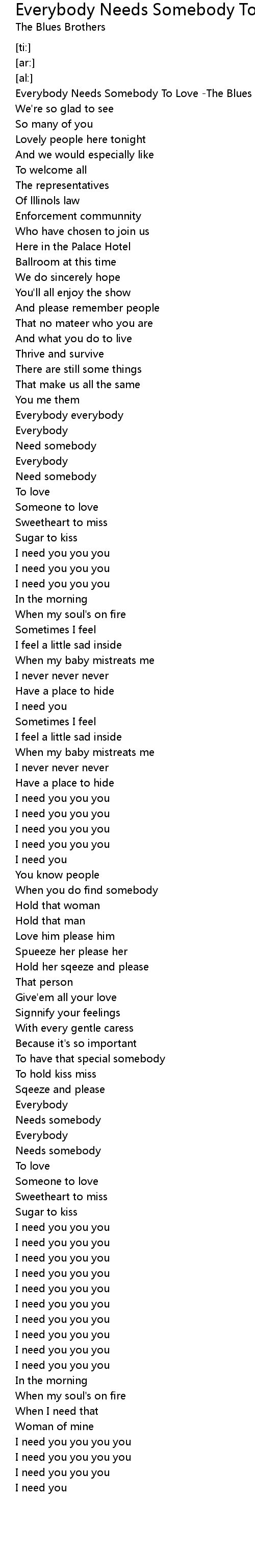 [00:00.00] Everybody Needs Somebody To Love -The Blues Brothers