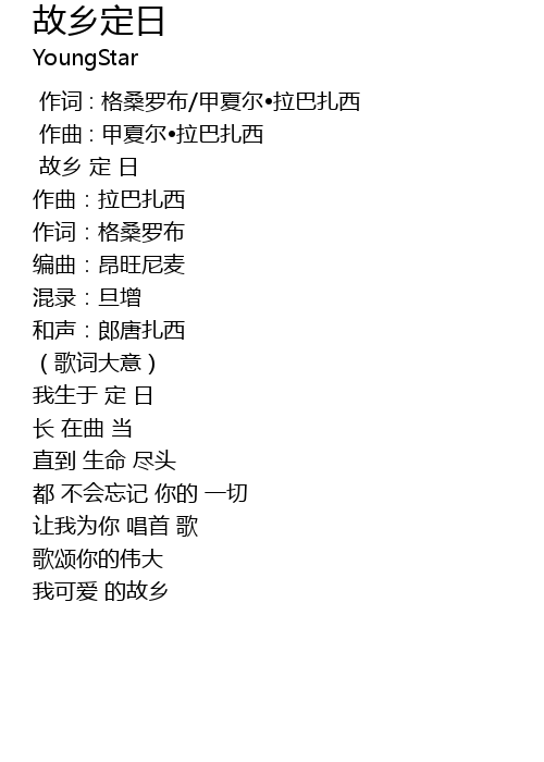 | [00:00.00] | 作词 : 格桑罗布/甲夏尔•拉巴扎西 |