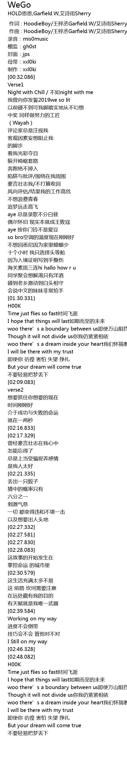 | [00:01.000] | zuo qu : HoodieBoy wang zi cheng Garfield. W ai shi yu Sherry |