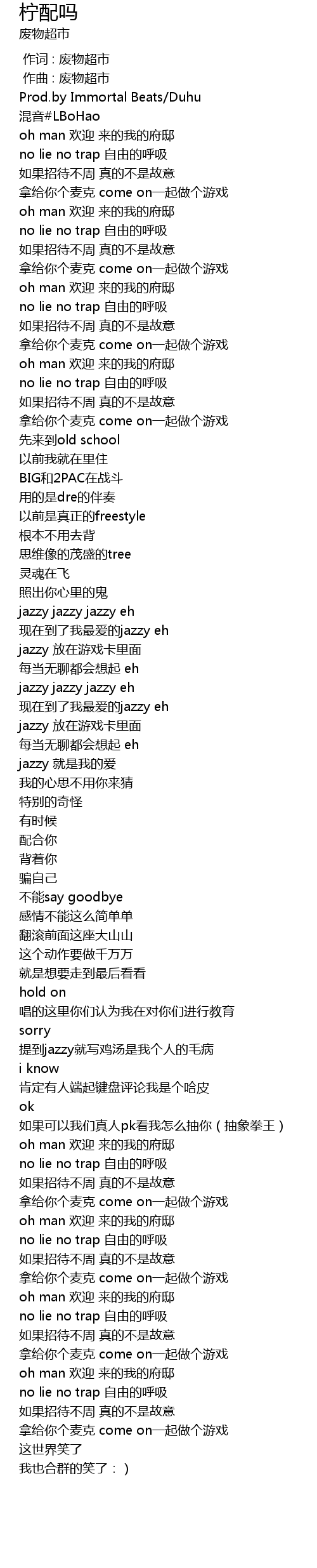 | [00:14.686] | oh man 欢迎 来的我的府邸 |