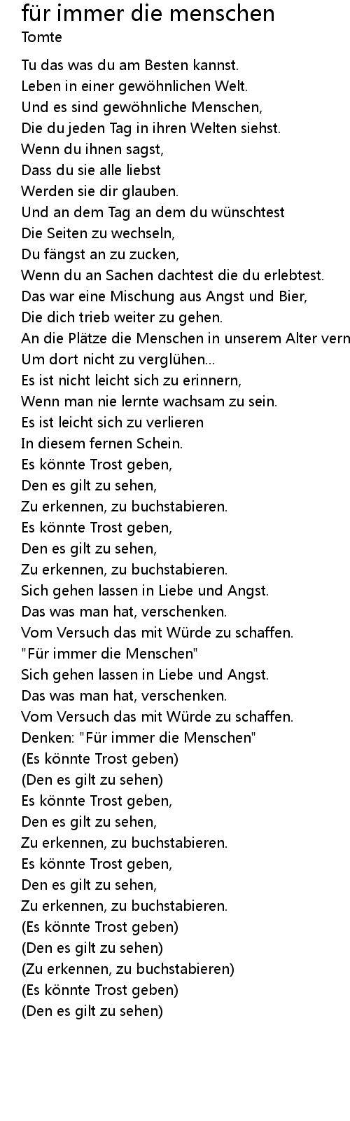 | Vom Versuch das mit Wü rde zu schaffen. | |