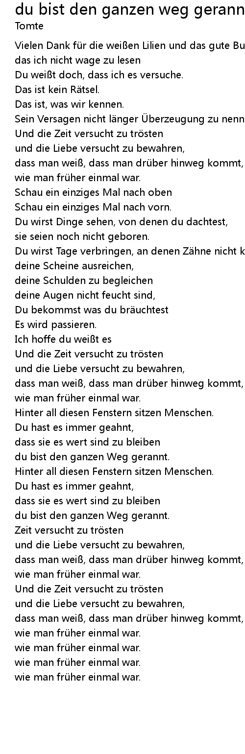 | dass man wei, dass man drü ber hinweg kommt, | |