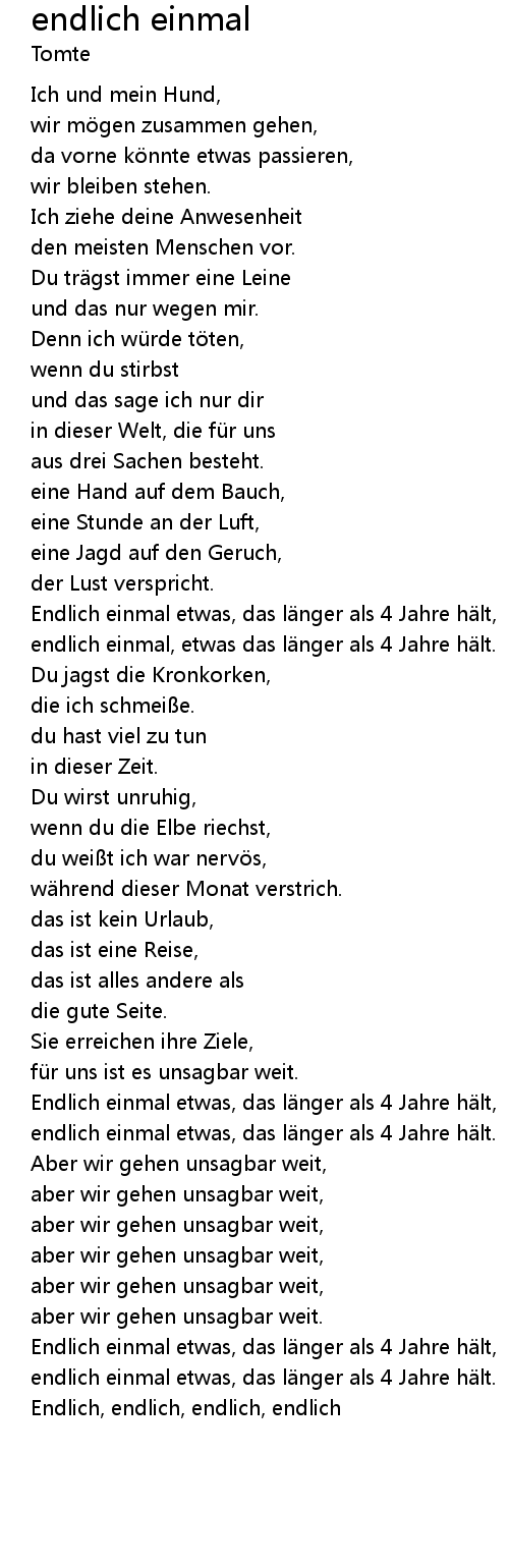 | Song | endlich einmal |