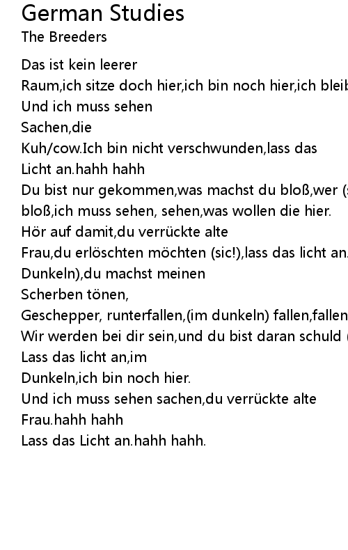 | Frau,du erlöschten möchten (sic!),lass das licht an.hahh hahh hahh hahh(Im Dunkeln),du machst meinen | |