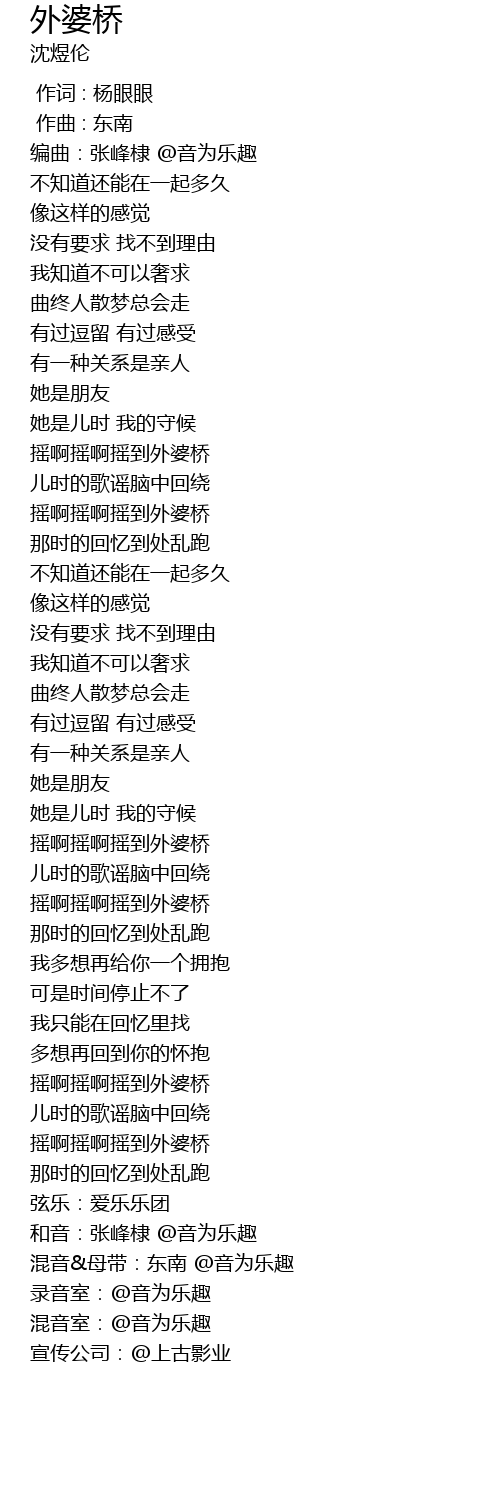 | [03:17.67] | 摇啊摇啊摇到外婆桥 |