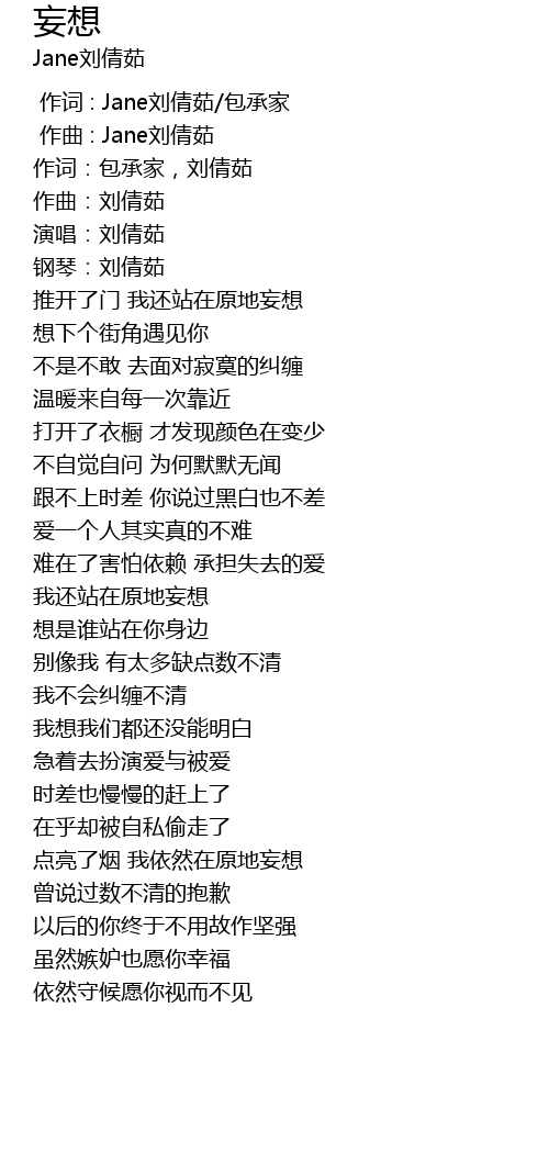 | Album | 【原创】Jane刘倩茹-妄想 |