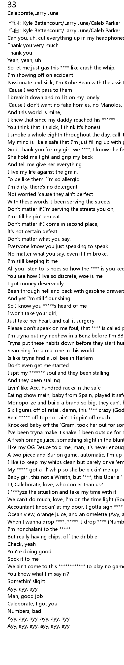 | [03:04.53] | When I wanna drop ****, *****, I drop **** (Numbers) |