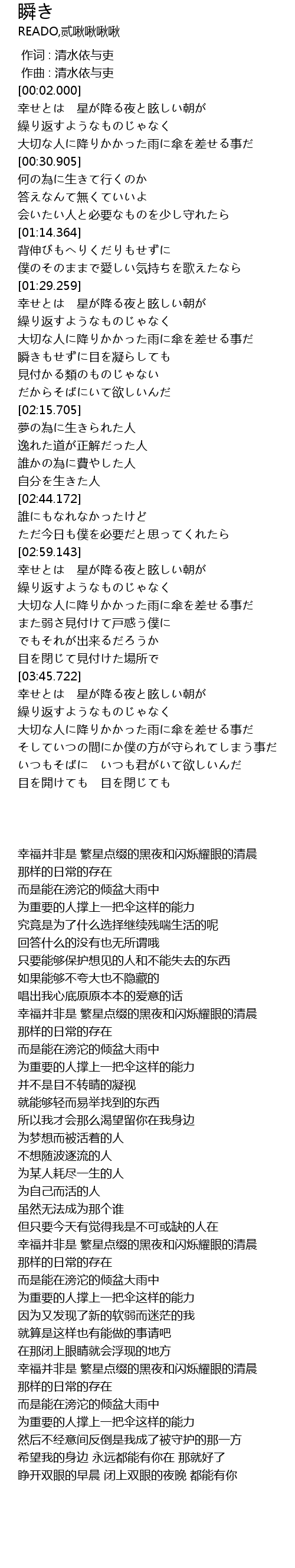 | [00:00.000] | 作词 : 清水依与吏 |