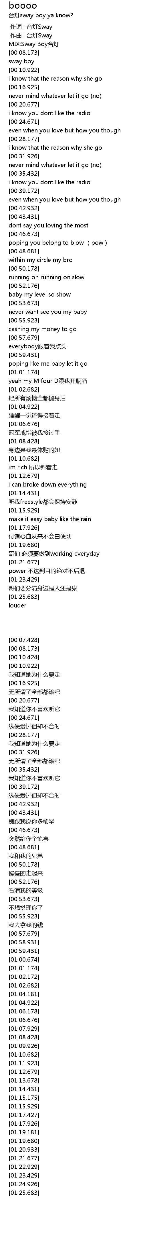 | [00:07.428] | MIX: Sway Boy tai deng |